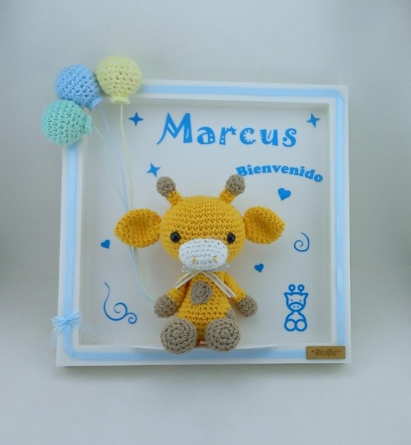 Cuadritos de Nacimientos, medidas 22x22 cm, ideales para dar la bienvenida en Sanatorios o para decorar la habitación del bebé, por eso la base no es madera, sino un material más liviano.